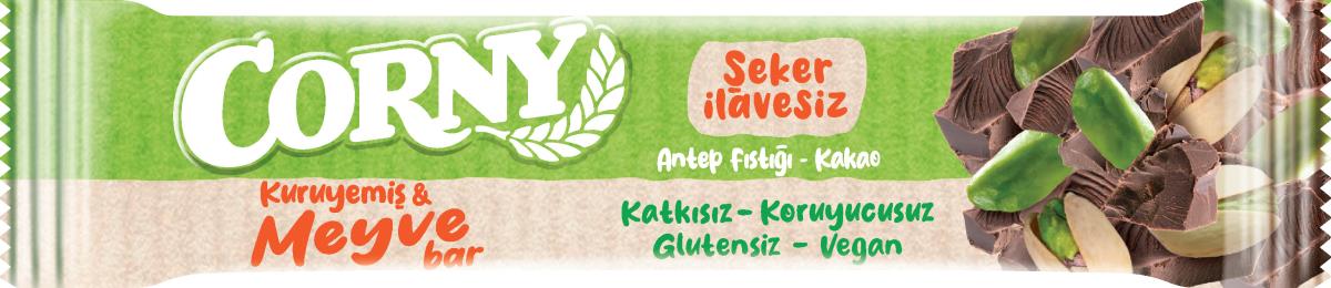 Gerçek Antep fıstığı lezzetiyle enerji dolu bir atıştırmalık! Vazgeçilmez lezzet antep fıstığı ile yapılmış en masum tatlı Corny Antep Fıstıklı meyve bar. Her ısırıkta antep fıstığı lezzeti masum tatlı kaçamaklarınızı keyiflendirecek. Tatlı krizi anlarının en masum alternatifi Corny meyve bar; • İlave şeker içermez • Doğal meyve ve kuruyemişlerle yapılmıştır • Glutensiz ve vegandır Aktif yaşam tarzınıza uyum sağlayan lezzetli ve pratik bir alternatif!