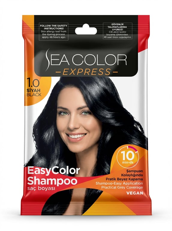 Sea Color Express Easy Color Shampoo Saç Boyası , şampuan kolaylığında uygulanan pratik saç boyasıdır. Sadece 10 dakikada saçlara doğal ve yoğun koyu kahve renk kazandırırken beyaz saçları etkili şekilde kapatmaya yardımcı olur. Kolay uygulanabilen formülü sayesinde evde hızlı ve zahmetsiz saç boyama deneyimi sunar.