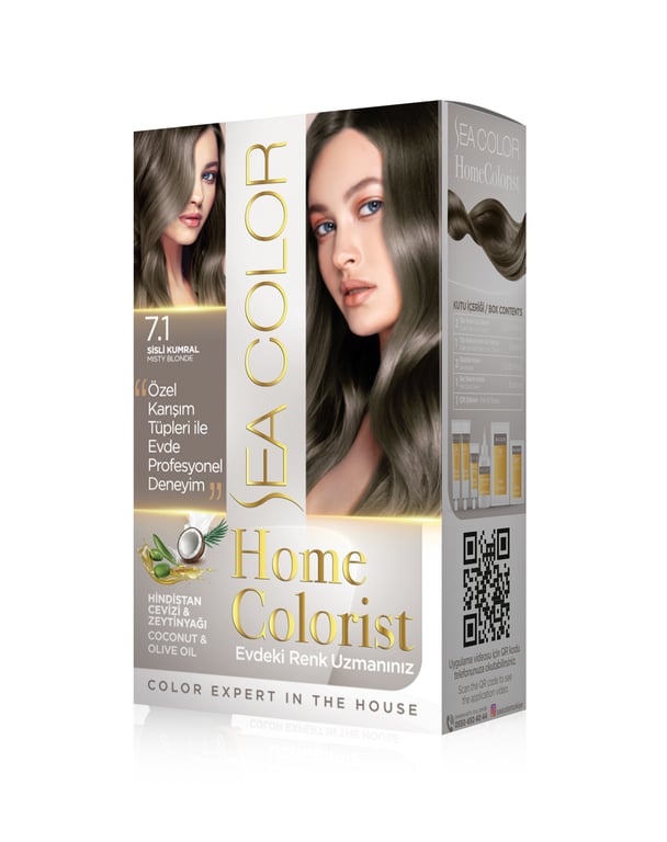 SEA COLOR HOME COLORIST Kutu İçeriği: 2 Tüp Krem Saç Boyası (50 ml) 1 Tüp Asistan Krem Saç Boyası (30 ml) 2 Oksidan Krem (2x65 ml) 1 Saç Bakım Kremi (10 ml) 1 Çift Eldiven Sea Color HomeColorist Serisi ile kullanıcının profesyonel kanallara ihtiyaç duymadan, daha yoğun beyaz kapamak, renk yoğunluğunu artırmak ve istenmeyen kızarıklık oluşumlarını engellemek gibi işlemleri kendi başına evde yapabilmesi hedeflenmiştir. Boya seti boya içinde esas renge destek olacak ve asistan boya olarak adlandırılan 30 ml tüp eklenmiştir. Asistan boya desteği ile Daha iyi beyaz kapama, Daha canlı renk sonuçları, Bazı renklerde oluşabilecek istenmeyen kızarıklıkları nötralize etmek amaçlanmıştır. 18 renk seçeneği sunar