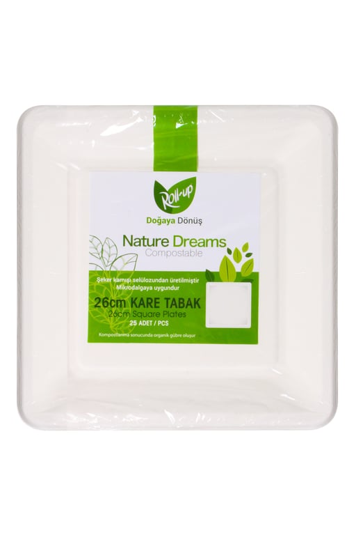 Roll-up Doğaya Dönüşümlü Kare Tabak 26cm 25 Adet 8681447713566