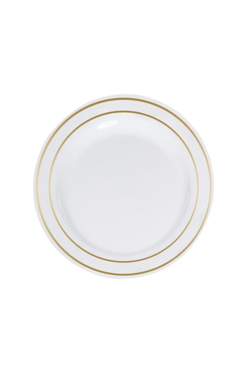 19cm çapında, orta boy, porselen görünümlü lüks plastik tabak. Gümüş çerçeveli, büyük, dayanıklı plastik tabak, davet ve organizasyonlarınız için şık bir prezantasyon sağlar.Parti ve Doğum Günlerinize renk katın.