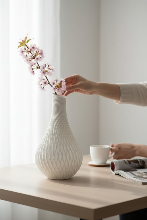 Desenli yüzeyiyle öne çıkan bu tasarım vazo, modern ve estetik görünümüyle dekorasyona şık bir dokunuş katar. Masa, raf veya konsol üzerinde sergilemek için uygundur. Dekoratif kullanım ve hediye için idealdir.