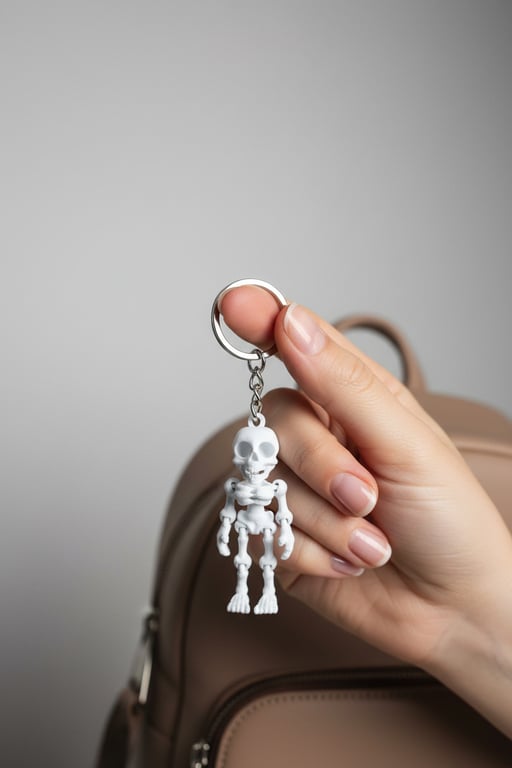 Gülümseyen iskelet figür tasarımına sahip hareketli anahtarlık, oynar yapısıyla eğlenceli ve dikkat çekici bir kullanım sunar. Hafif ve dayanıklı yapısı sayesinde anahtar, çanta veya sırt çantasında rahatlıkla kullanılabilir. Günlük kullanım ve hediye için uygundur.