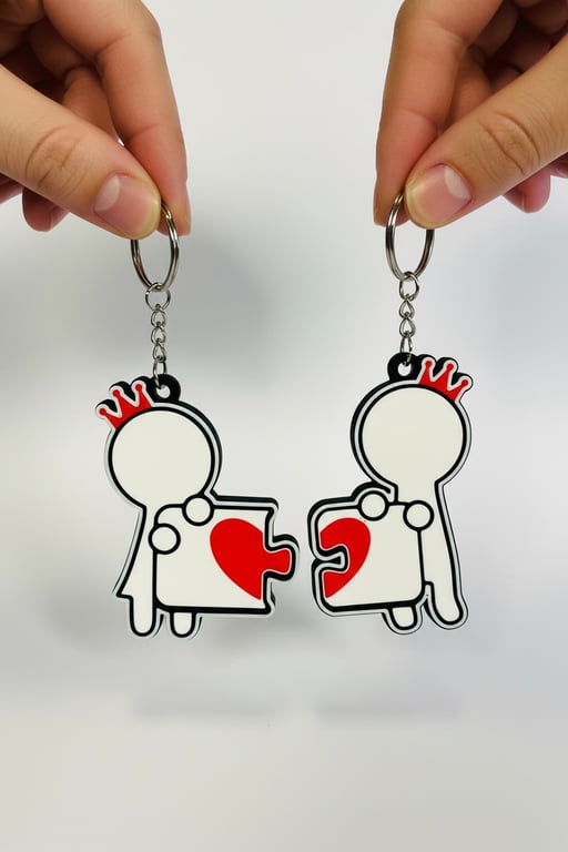 Kalp şeklindeki yapboz tasarımıyla hazırlanan bu çift anahtarlık, iki parçanın birleşmesiyle anlam kazanan özel bir aksesuardır. Sevgililer, eşler veya yakın arkadaşlar için anlamlı ve sembolik bir hediye seçeneği sunar. Birbirini tamamlayan parçalar sayesinde birlikte olmanın ve uyumun simgesi olarak tercih edilir. Anahtarlar veya çantalar üzerinde rahatlıkla kullanılabilir.