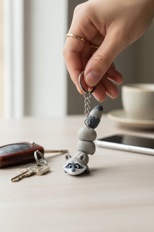 Rakun figür tasarımına sahip hareketli anahtarlık
