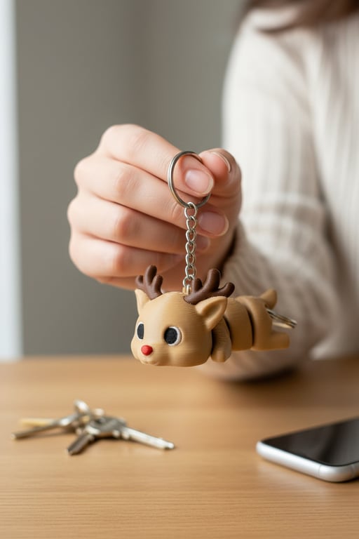 Ren geyiği figür tasarımına sahip hareketli anahtarlık, sevimli ve dikkat çekici görünümüyle öne çıkar. Oynar yapısı sayesinde eğlenceli bir kullanım sunar. Anahtar, çanta veya sırt çantasında rahatlıkla kullanılabilir. Günlük kullanım ve hediye için uygundur.