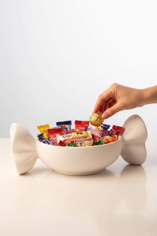 Şeker formunda tasarlanmış bu dekoratif kase, şeker, çikolata ve küçük atıştırmalıkları şık bir şekilde sunmak için idealdir. Eğlenceli tasarımı sayesinde hem dekoratif bir obje hem de pratik bir sunum kabı olarak kullanılabilir. Salon, mutfak veya ofis masalarında dikkat çekici bir görünüm oluşturur. Misafirlerinize ikram sunarken farklı ve modern bir alternatif sağlar.