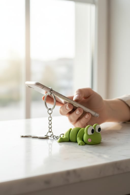 Sevimli kurbağa figür tasarımına sahip hareketli anahtarlık