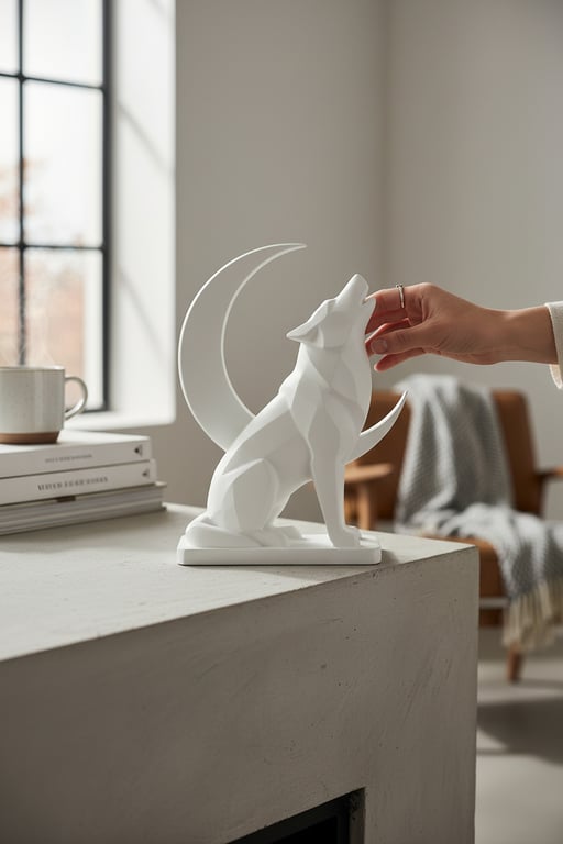 Uluyan bozkurt ve hilal figürlerinin yer aldığı bu biblo, güçlü ve anlamlı tasarımıyla dekoratif bir görünüm sunar. Masa, raf veya vitrin üzerinde sergilemek için uygundur. Koleksiyonluk ve hediye olarak tercih edilebilir.