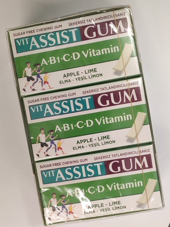 Vitassist Gum A-B1-C-D Vİtamİn MATCHA ELMA -YEŞİL LİMON SAKIZ  27gr Paket İçİ 12 Adet
