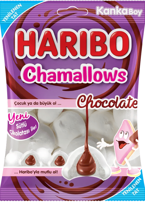 Haribo Chamallows, yumuşacık marshmallow lezzetini enfes çikolata dolgusu ile birleştiriyor. Tatlı keyfinize keyif katacak!
