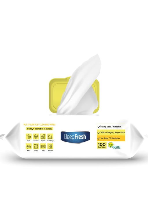 Deep Fresh İz Bırakmaz Yüzey Temizlik Havlusu 100 Yaprak | Limon Yağlı | Karbonat, Beyaz Sirke
