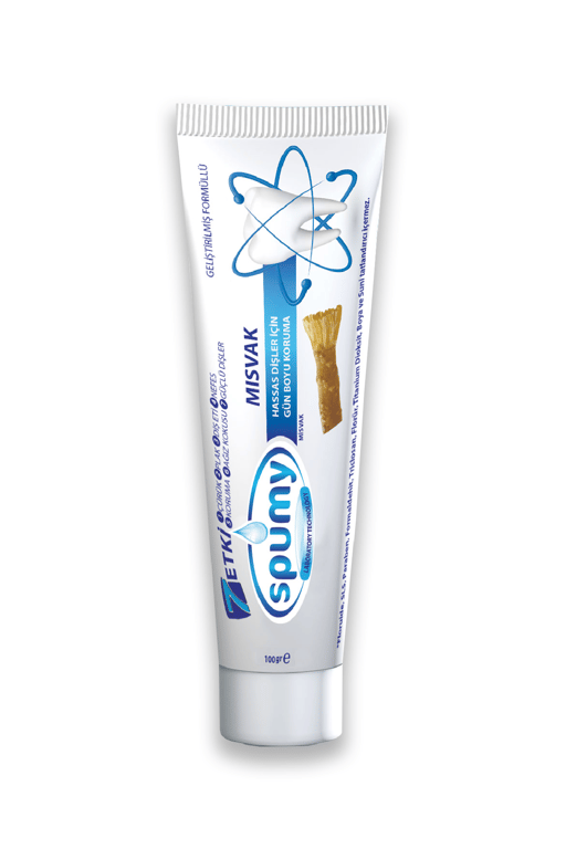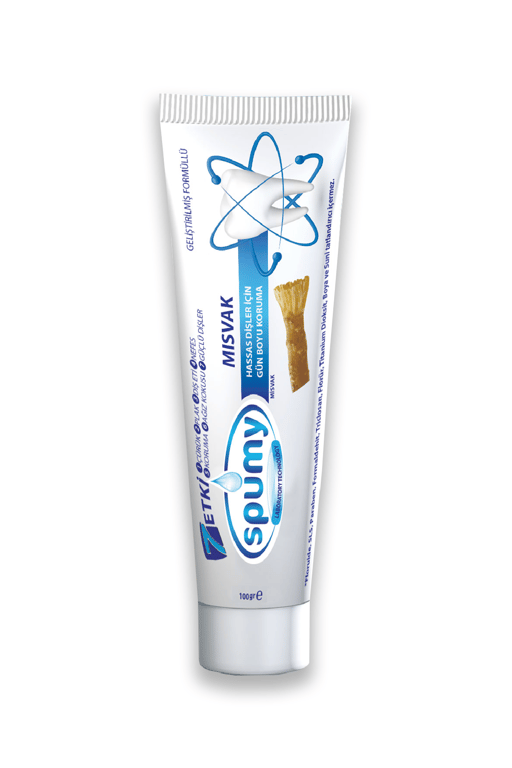 SPUMY DİŞ MACUNU MİSVAK VE PROPOLİSLİ Diş yüzeyinde kendine bir yaşam alanı kuran plakları ve bakterileri ortadan kaldırmaya ve diş eti hastalıklarına karşı savaşmaya yardım eden özel formülü sayesinde, Spumy Misvak ve Propolis özlü Diş Macunu ağız sağlığı için son derece önemlidir. Nefesinizin Daha Ferah, Gülüşlerinizin Daha Beyaz Olmasını Sağlar. Misvak ve Propolis İle Nazikçe Parlatır. Düzenli Kullanımıyla, Dişlerinizin Beyazlığını Daha Uzun Süre Korumasına Yardımcı Olur. ISO 9001 ve Good Manufacturing Practices Belgeri ile Avrupa Standartlarına uygun bir şekilde üretilmiştir. HAYDİ DURMA SENDE KEŞFET..