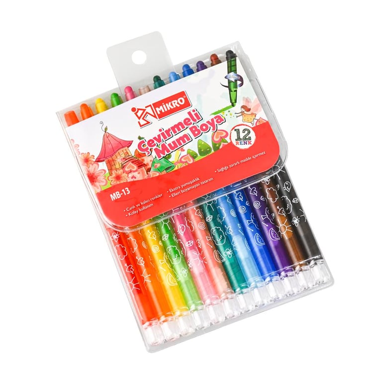 Mikro St.MB-13 Çevirmeli Mum Boya 12 Renkli 12 Adet'li 6941682601137