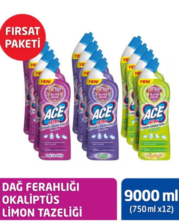 Ace Ultra Yoğun Kıvamlı Çamaşır Suyu Fırsat Paketi 12'li 9000 Ml 8681002991750