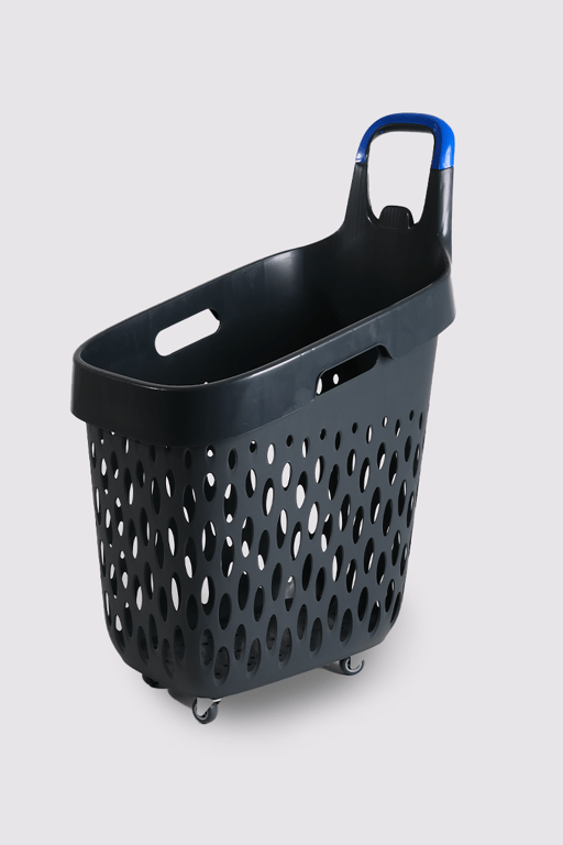 Tekerlekli Market Sepeti (Tekerlekli Alışveriş Sepeti Mavi Saplı Bölmeli ) 73 L Siyah