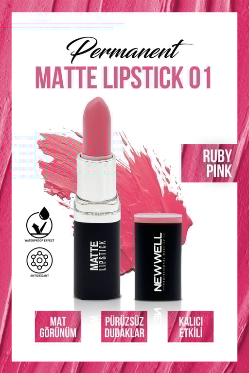 New Well Permanent Matte Lipstick 01Ruby Pink | Uzun Süre Kalıcı 8680923349213