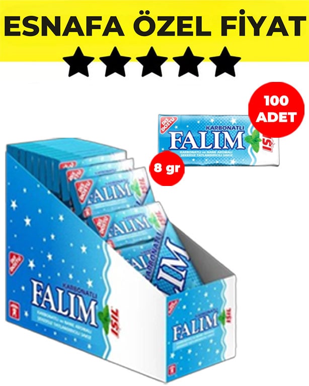 Falım İşıl Karbonatlı ve Nane Aromalı Şekersiz 5'li 8 Gr 100 Adet Sakız 8690515593832