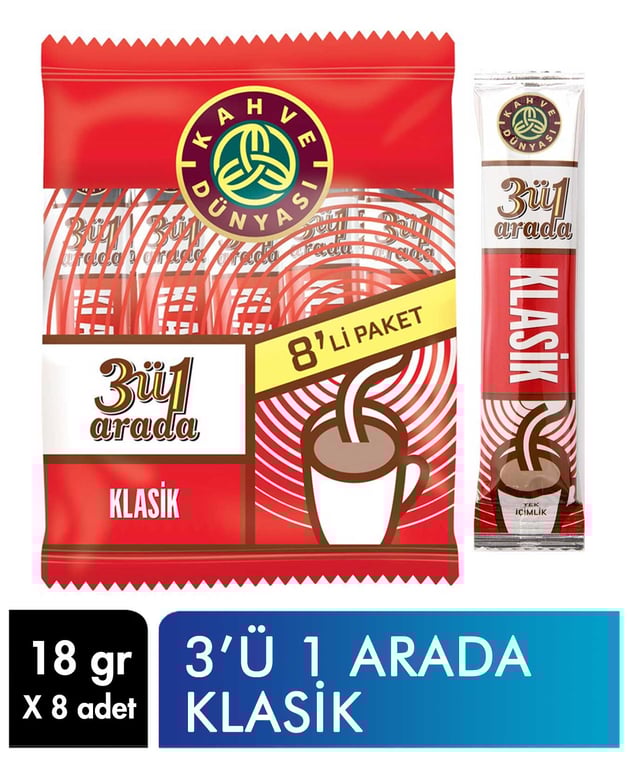 Kahve Dünyası Hazır Kahve 18 gr X 8'li Paket 3'ü 1 Arada Klasik 8697447043701