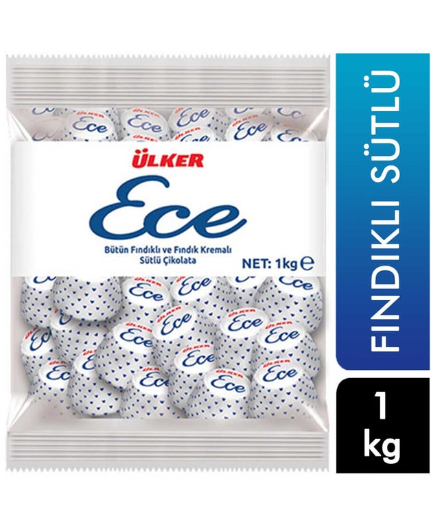 Çikolata sevenlerin vazgeçilmezleri arasında yer alan Ülker Ece İkramlık Çikolata misafirlerinizle paylaşmanız için 1 kglık büyük paketinde. İçeresinde bütün fındık ve fındık kreması içeren yumuşacık kıvama sahip Ülker Ece bayramlık çikolata tek tek paketlenmiş haldedir ve çocukları sevindirmek için dağıtmaya da uygundur.
