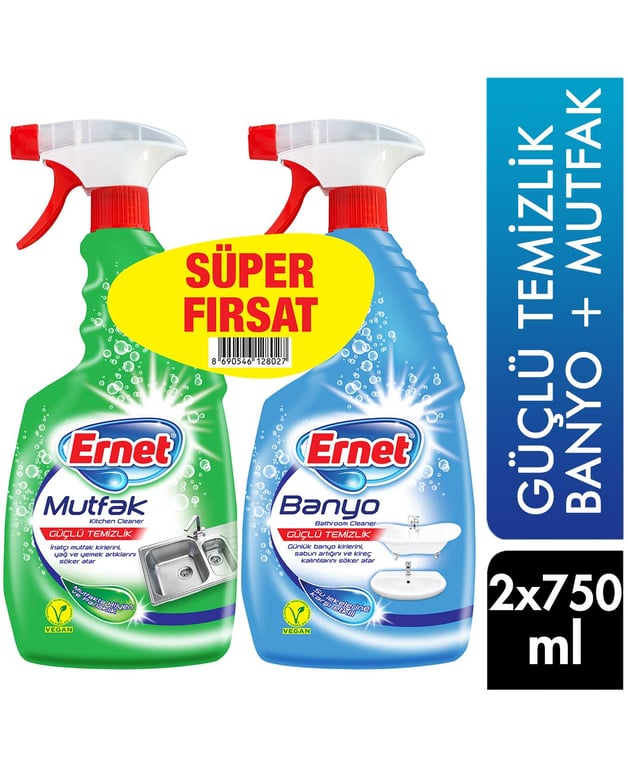 Ernet Yüzey Temizleyici 750 ml Banyo + 750 ml Mutfak 8690546128027