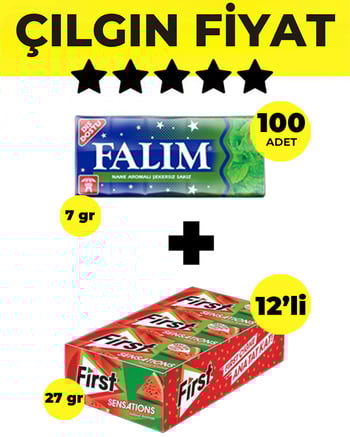 Falım (5'li 8gr x 100 Adet) - First (27gr x 12) Avantajlı Falım Işıl Sakız ve First 60 Dakika Keskin Nane Sakız