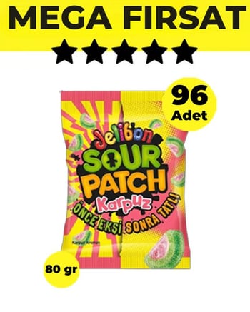 Jelibon Sour Patch Karpuz Yumuşak Şekerleme 80 gr - 96 Adet-4 Koli