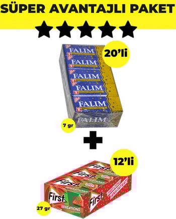Falım Damla Aromalı Sakız (5'li x 20 Adet)- First Sensations Karpuz Aromalı Sakız (27gr x 12 Adet) - Avantajlı Falım First Paketi