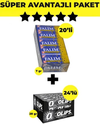 Falım Işıl Karbonatlı & Nane Aromalı Sakız (5'li x 20 Adet)- Olips Mentol Okaliptüs 24'lü Paket (28gr x 24 Adet) - Avantajlı Falım Olips Paketi