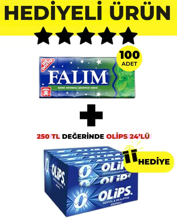 Falım Nane Aromalı Sakız (5'li 7gr x 100 Adet)- Olips Mentol Okaliptus Şeker 24’lü Paket (28gr x 24 Adet) Avantajlı Falım-Olips Paketi