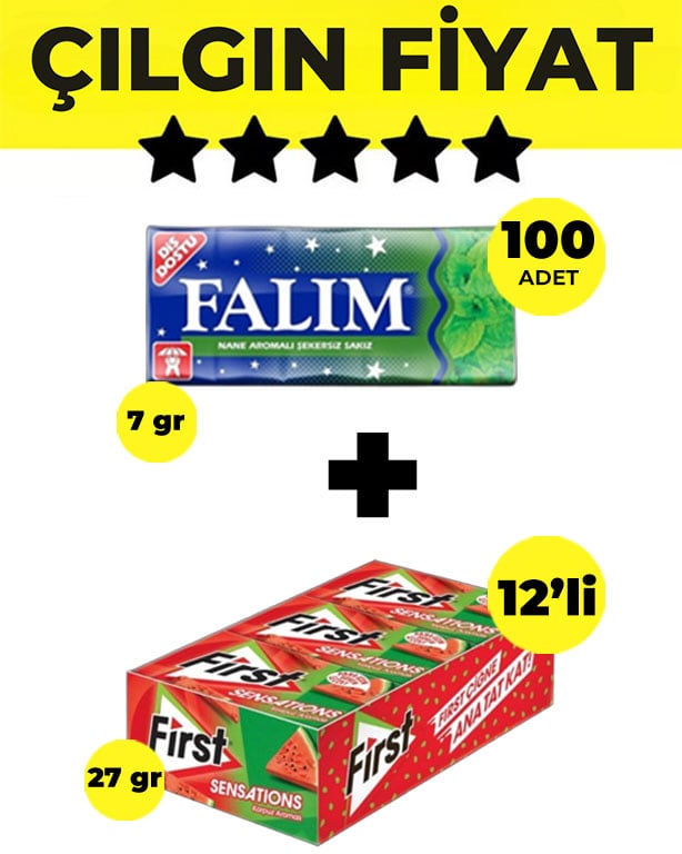 Falım Nane Aromalı Sakız (7gr x 100 Paket) - First Sensations Karpuz 12’li Paket (27gr x 12 Adet) Avantajlı Falım-First Paketi