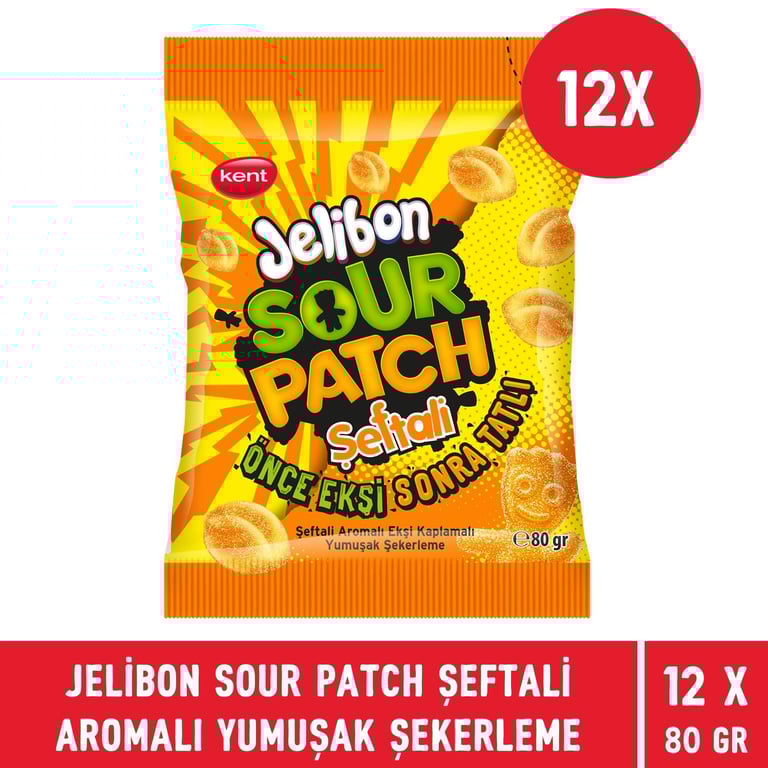 Jelibon Sour Patch Şeftali Aromalı Yumuşak Şekerleme 80 gr - 12 Adet