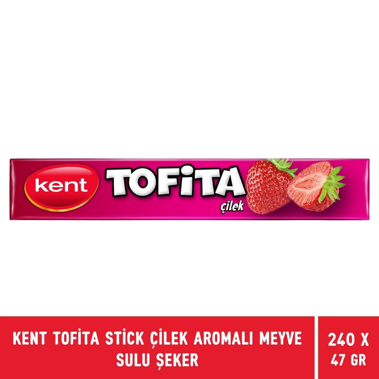 Kent Tofita Stick Çilek Aromalı Meyve Sulu Şeker 47gr X 240 Adet SET.MONDELEZ.606