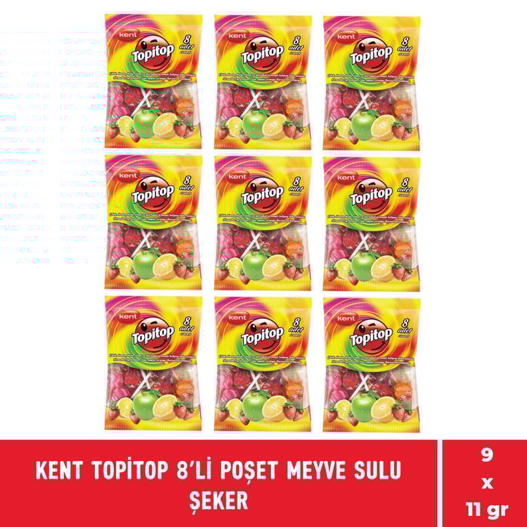 Kent Topitop 8'li Poşet Meyve Sulu Şeker - 9 Adet SET.MONDELEZ.434