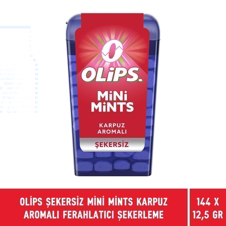 Olips Şekersiz Mini Mints Karpuz Aromalı Ferahlatıcı Şekerleme 12,5 gr X 144 Adet