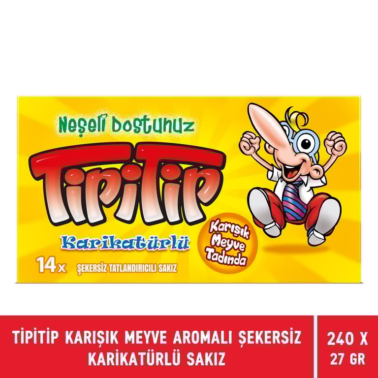 Tipitip Karışık Meyve Aromalı Şekersiz Karikatürlü Sakız 27 gr X 240 Adet