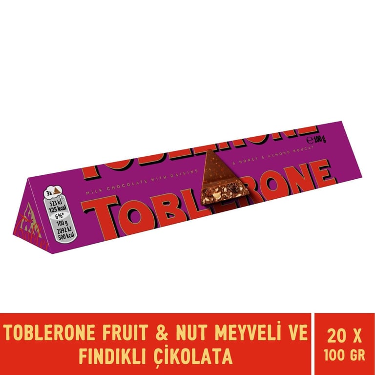 Toblerone Fruit & Nut Meyveli ve Fındıklı Tablet Çikolata 100 gr X 20 Adet