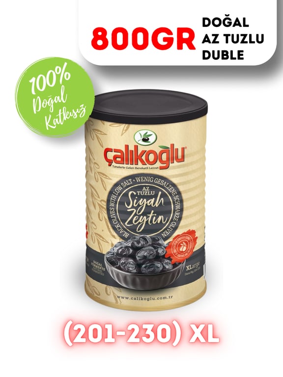 Çalıkoğlu Doğal Gemlik Duble Siyah Zeytin (Az Tuzlu) 800 gr (201-230) XL Z153 017
