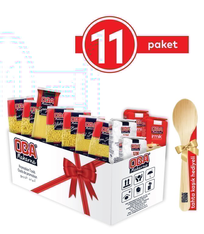 Açıklama : 7 PAKET 500 GR MAKARNA 2 PAKET 1 KG UN 2 PAKET 500 GR İRMİK Oba İri Kalem Kesme Makarna (500gr) Oba İnce Kesme Makarna (500gr) Oba Spagetti Makarna (500gr) Oba Kelebek Makarna (500gr) Oba Burgu Makarna (500gr) Oba Arpa Şehriye (500gr) Oba Tel Şehriye (500gr)  Oba İrmik 2 PAKET (500gr) Oba Un 2 PAKET (1000gr)