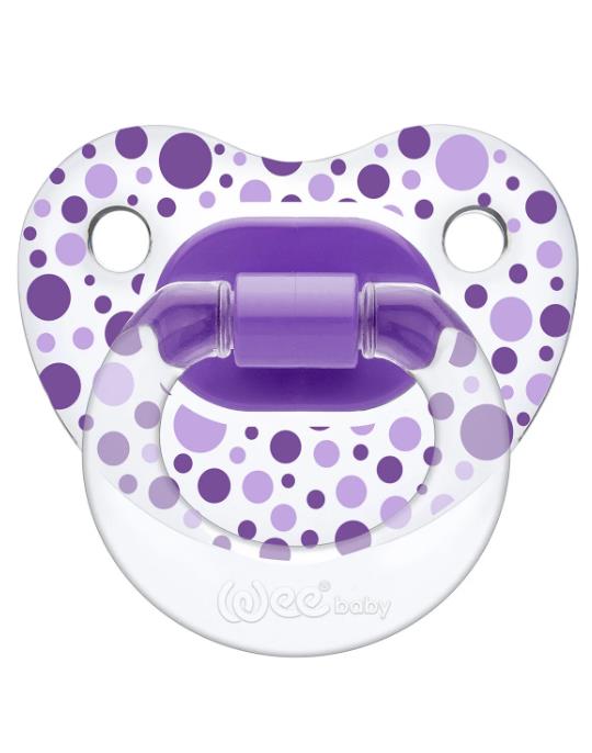 Wee Baby Şeffaf Desenli Silikon Damaklı Emzik No:2 6-18 Ay Mor 6-18 Ay bebekler için uygundur.