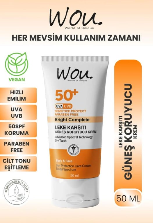 Wou Leke Karşıtı Yüksek Koruma Güneş Kremi SPF50+ 50 ml 8683348001698