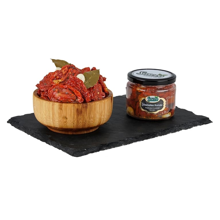 Ürettiği ürünler ile sektörünün önde gelen markalarından olan Sosero markası tarafından üretilen Sosero Domates Kurusu ürününü kahvaltı sofralarında tüketebileceğiniz gibi salatalarınıza ekleyerek lezzetini arttırabilirsiniz. Ege Bölgesi’nden mevsiminde toplanan domatesler, ilk olarak güneşte doğal yöntemlerle kurutulmaktadır. Ardından domates kurularının Bursa Gemlik’te bulunan üretim tesislerinde bitkisel yağlar ve çeşitli baharatlar ile lezzetlendirilmesi ile imal edilen Sosero Domates Kurusu, Türk damak tadına uygun koşullarda marine edilen bir gıda maddesidir. Ürün, eşsiz lezzeti ve benzersiz aromasının yanı sıra 300 gr’lık cam kavanoz ambalajı ile cebiniz için de ekonomik çözümler sunan bir üründür.