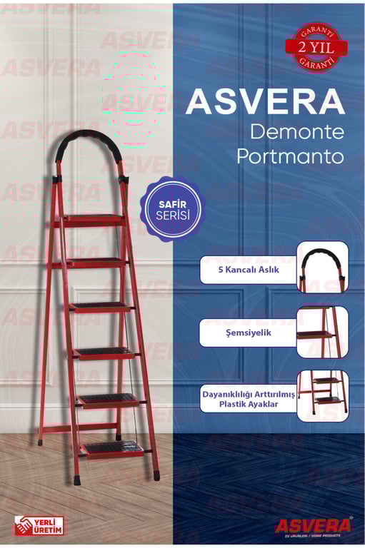 Safir Serisi Patika 6 Basamaklı Ev Tipi Katlanır Merdiven; bahçe, ev ve ofis kullanımında güvenli ve pratik bir çözümdür. Sağlam metal gövdesi ve kaymaz basamakları sayesinde her zeminde dengeli durur. Katlanabilir yapısı sayesinde az yer kaplar ve kolay taşınır. 150 kg taşıma kapasitesiyle temizlik, bakım ve düzenleme işlerinde konfor sağlar.