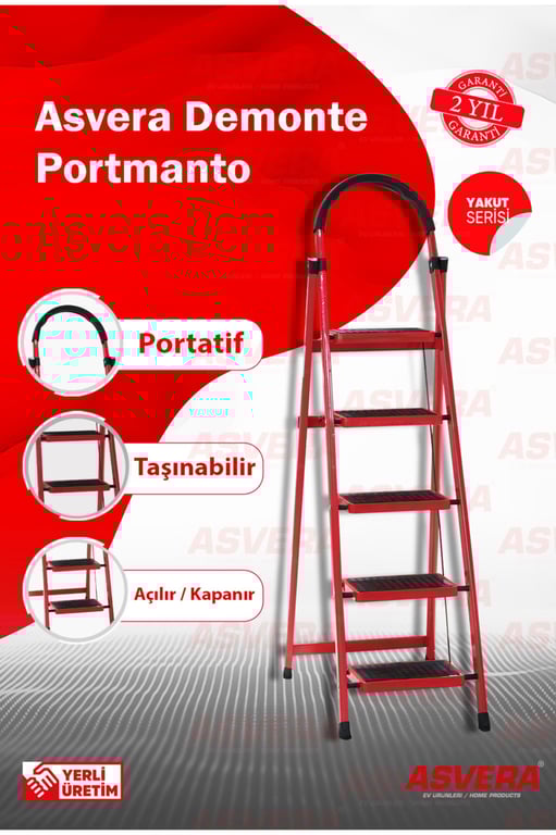 Yakut Serisi – Patika 5 Basamaklı Katlanır Merdiven | Depo, Bahçe ve Ev için Güvenli 03005YAKUTSERİSİ