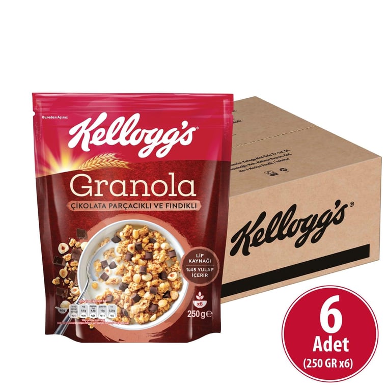 Kellogg's Çikolata Parçacıklı Ve Fındıklı Granola 250 Gr x 6 Adet SET.KLN.46