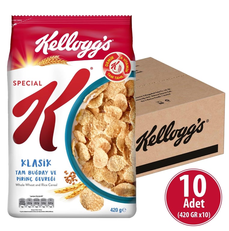 Special K Klasik Kahvaltılık Tam Buğday Ve Pirinç Gevreği 420 Gr x 10 Adet, Tam Tahıllı, Lif Kaynağı