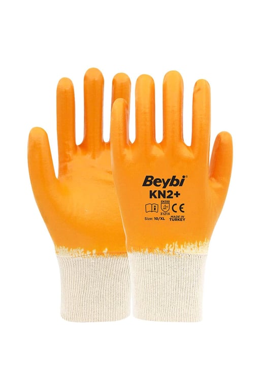 Beybi KN2+ Sarı Pamuk Nitril İş Eldiveni 10 Beden 12 Çift