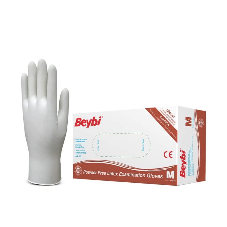 Beybi Pudrasız Lateks Muayene Eldiveni M Beden Beyaz 100'lü