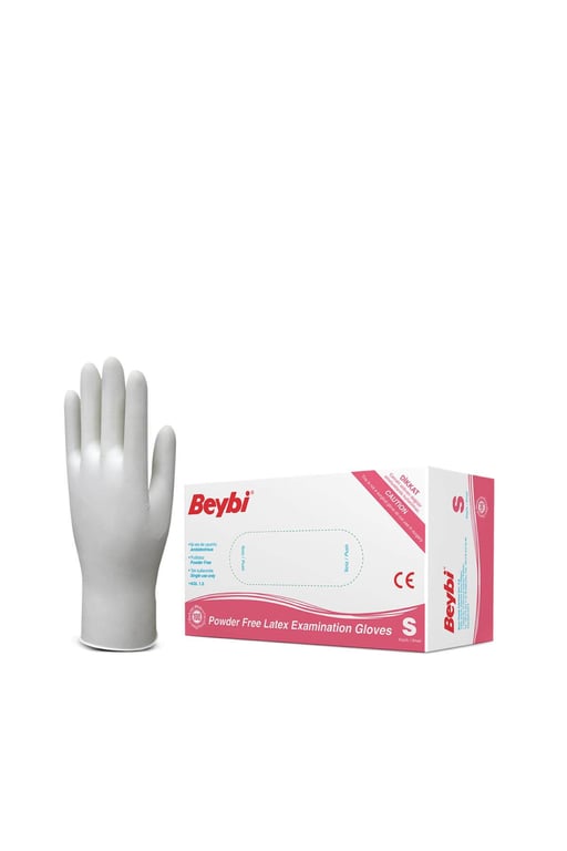 Beybi Pudrasız Lateks Muayene Eldiveni S Beden Beyaz 100'lü 8690648405002ES
