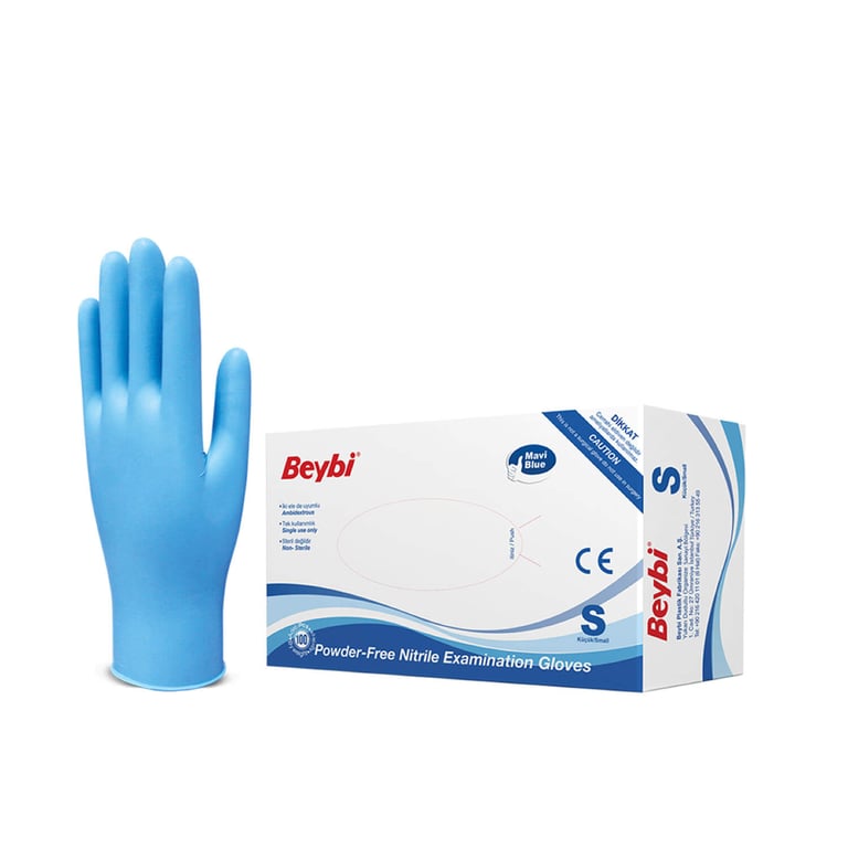 Beybi Pudrasız Nitril Muayene Eldiveni S Beden Mavi 100'lü